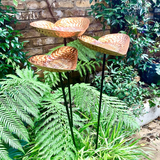 Set Of Three Copper Chalice Garden Pot Sculptures