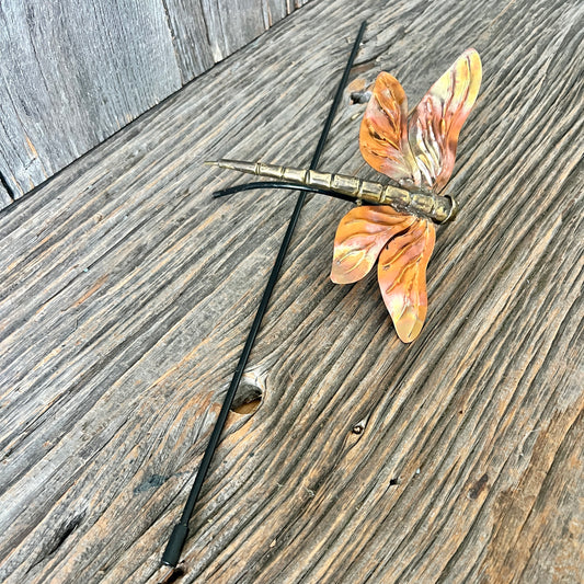 Handmade Copper Dragonfly Garden Stake – 80 cm Pole Outdoor Metal Art