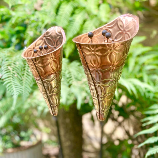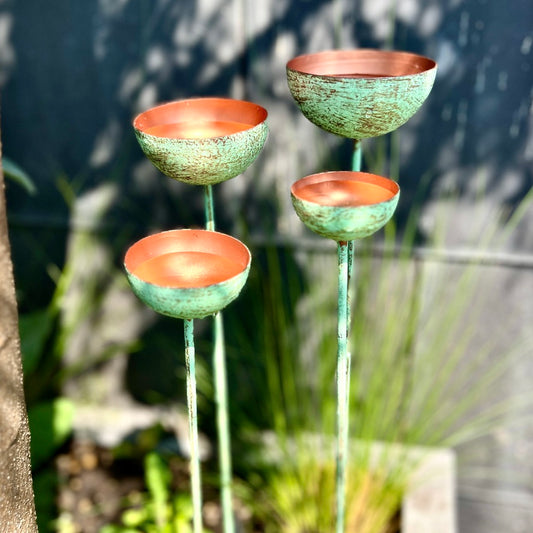 Set of 4 Verdigris Raincatcher Garden Sculptures