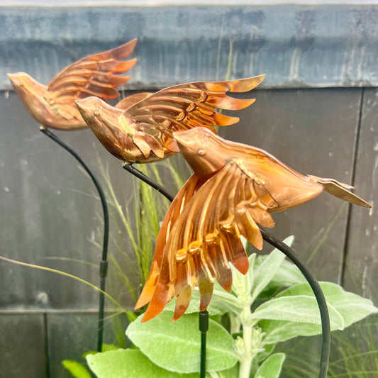 Handmade Copper Bird Garden Sculptures – Set of 3
