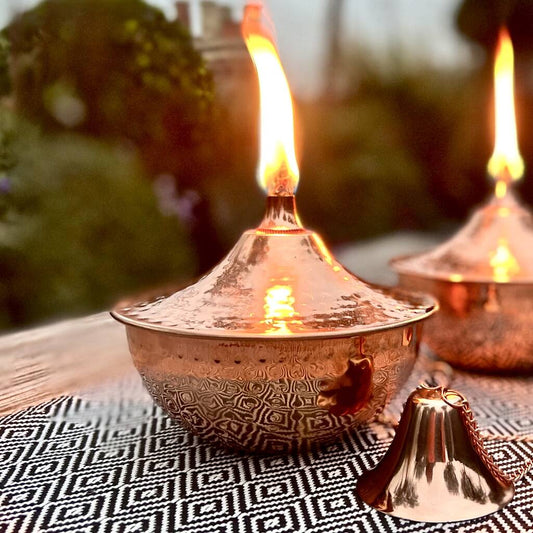 Copper Oil Burning Tabletop Garden Bowl Lantern