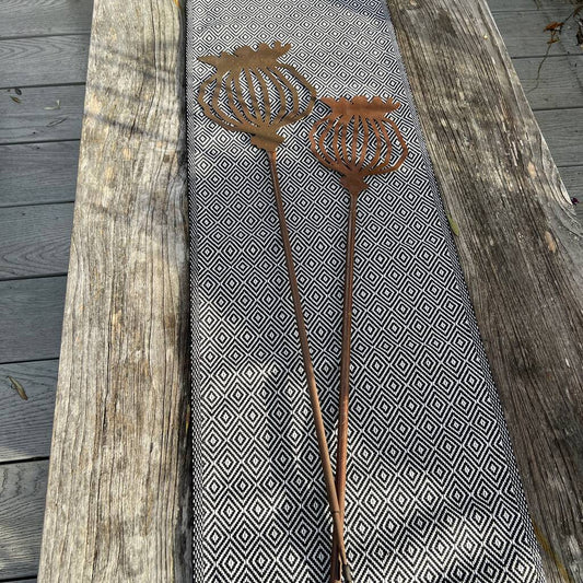 Set of 2 Poppy Seed Head Garden Stakes